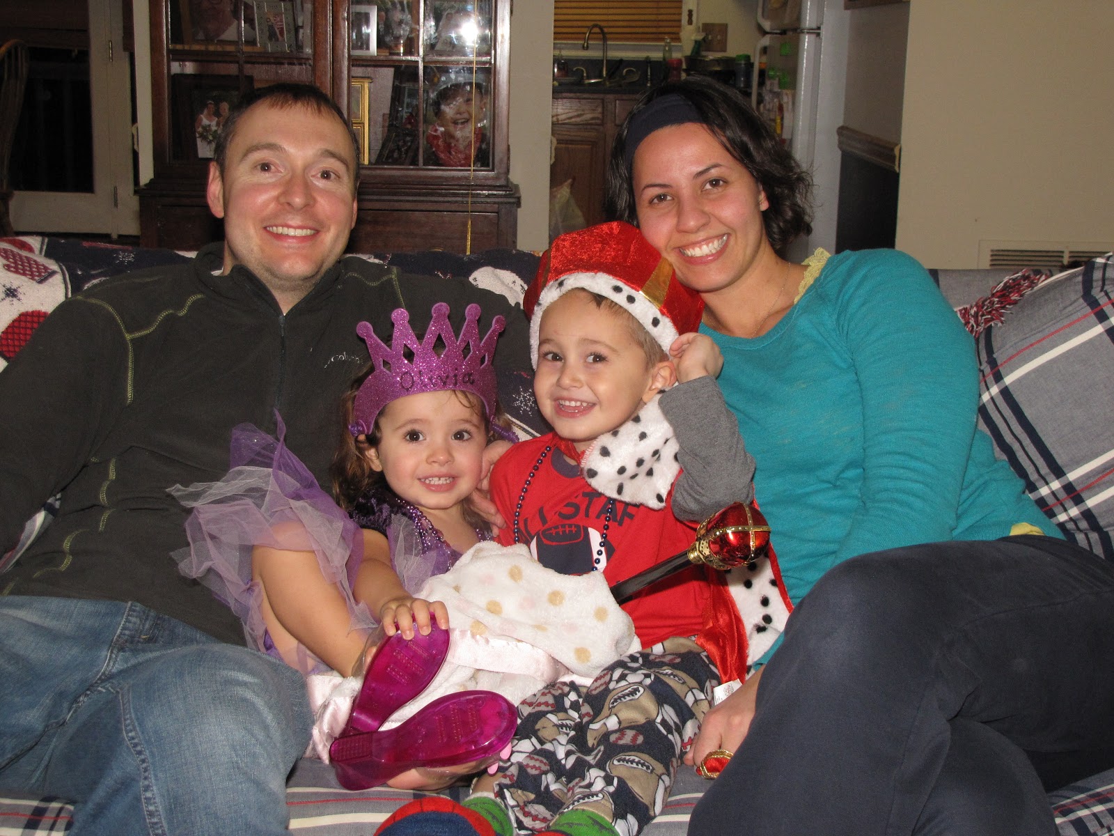 High on the bubbly (juice), the kids wanted to play music, sing, and dance...in their favorite costumes. Sir Master King Collin and his Royal Majesty Queen Olivia entertained us for the next hour with their instruments and silly antics.